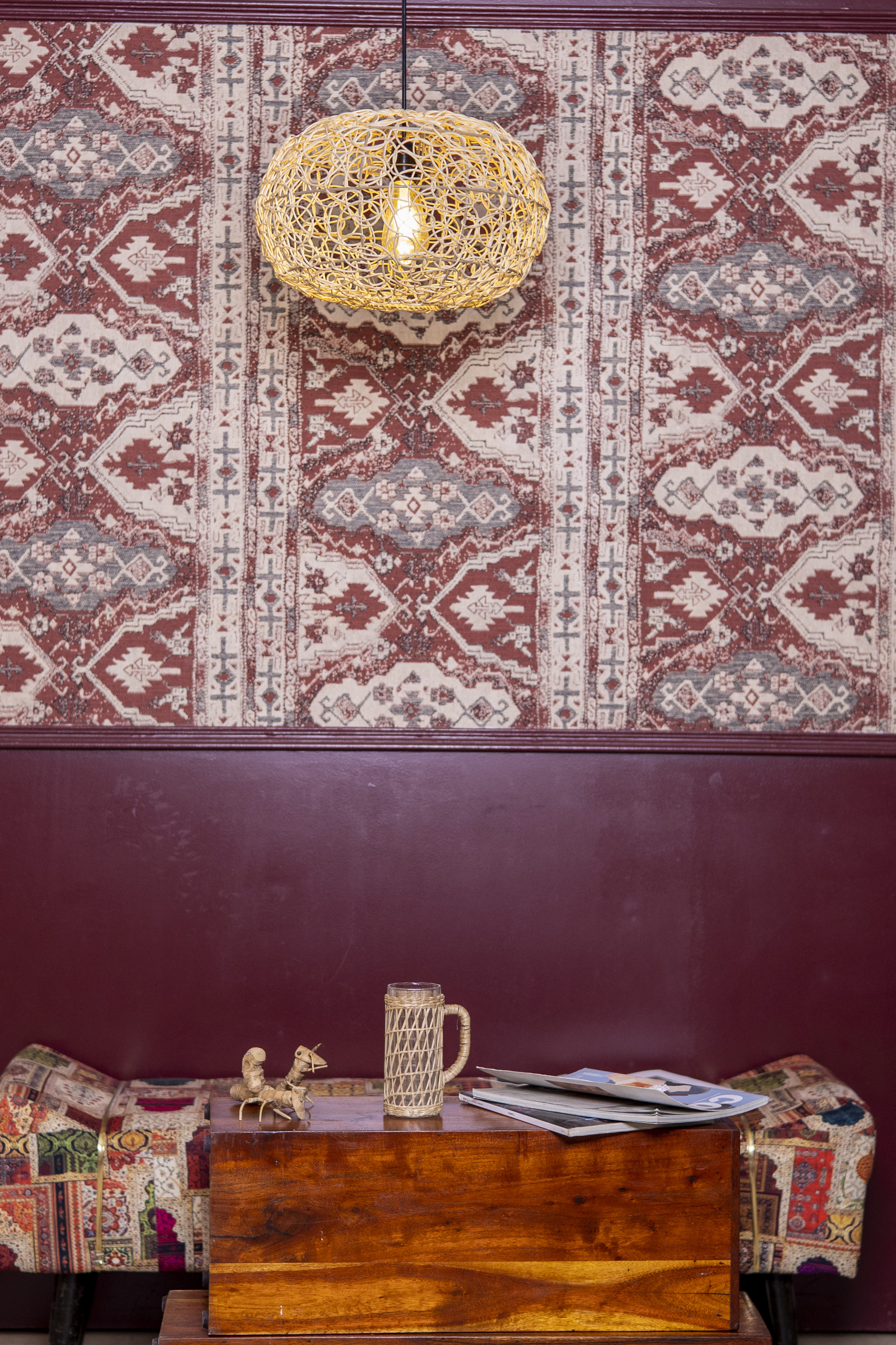 Handwoven lighting accent crafted by local artisans.